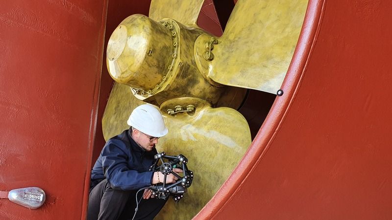 Inspect dynamic balance of marine propeller for desired rotational speed. Stereolithography image of propeller is analysed in special software for virtual balancing, now is not necessary to remove propeller from the drive shaft and can be balanced immediately in dry dock. This gives you a maximum competitive advantage.